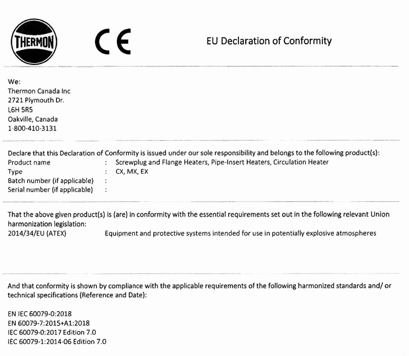 Bản vẽ kỹ thuật và chứng chỉ ATEX của thiết bị gia nhiệt Caloritech