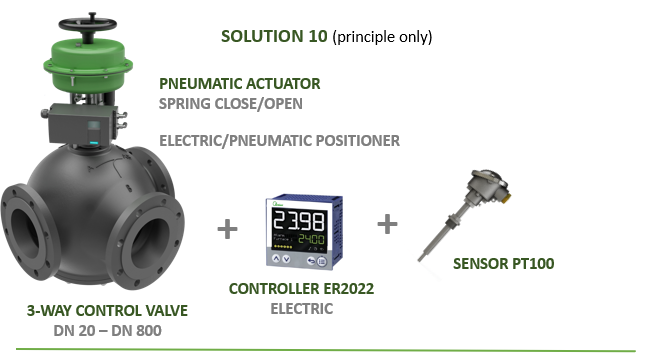 Trong ứng dụng này, van có hai cổng vào và một cổng ra. Van Clorius G3FA sẽ trộn hai dòng môi chất có nhiệt độ khác nhau (ví dụ: nước hồi từ hệ thống và nước nóng từ nguồn cấp) để tạo ra dòng nước đầu ra có nhiệt độ mong muốn trước khi đi vào thiết bị sử dụng nhiệt.