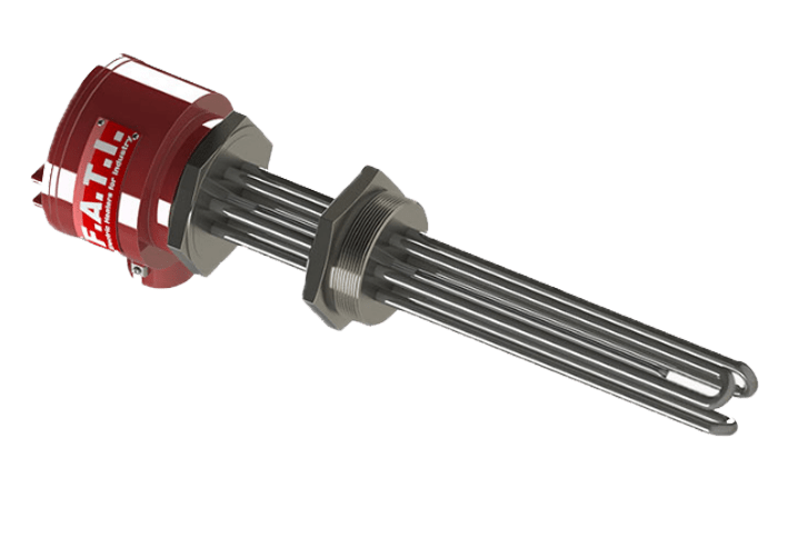 - Cấu tạo: Gồm các thanh gia nhiệt dạng ống (hairpin elements) hàn vào mặt bích tiêu chuẩn (ANSI, DIN).